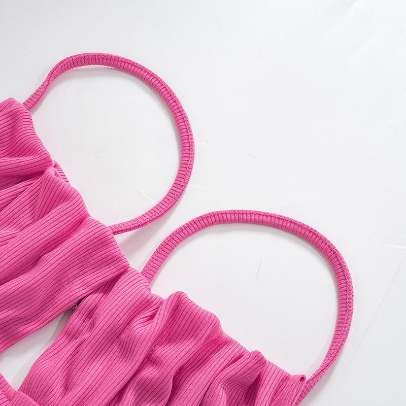 Be the first to review “Sleeveless solid ruched ribbed backless cami dress”