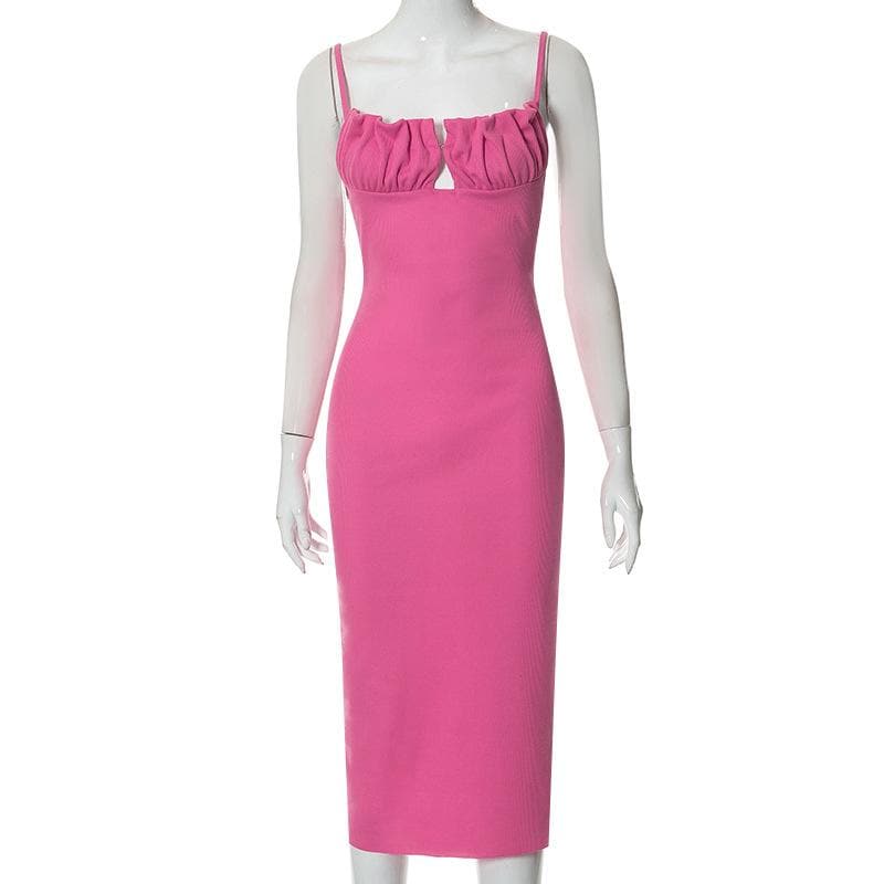 Sleeveless solid ruched ribbed backless cami dress